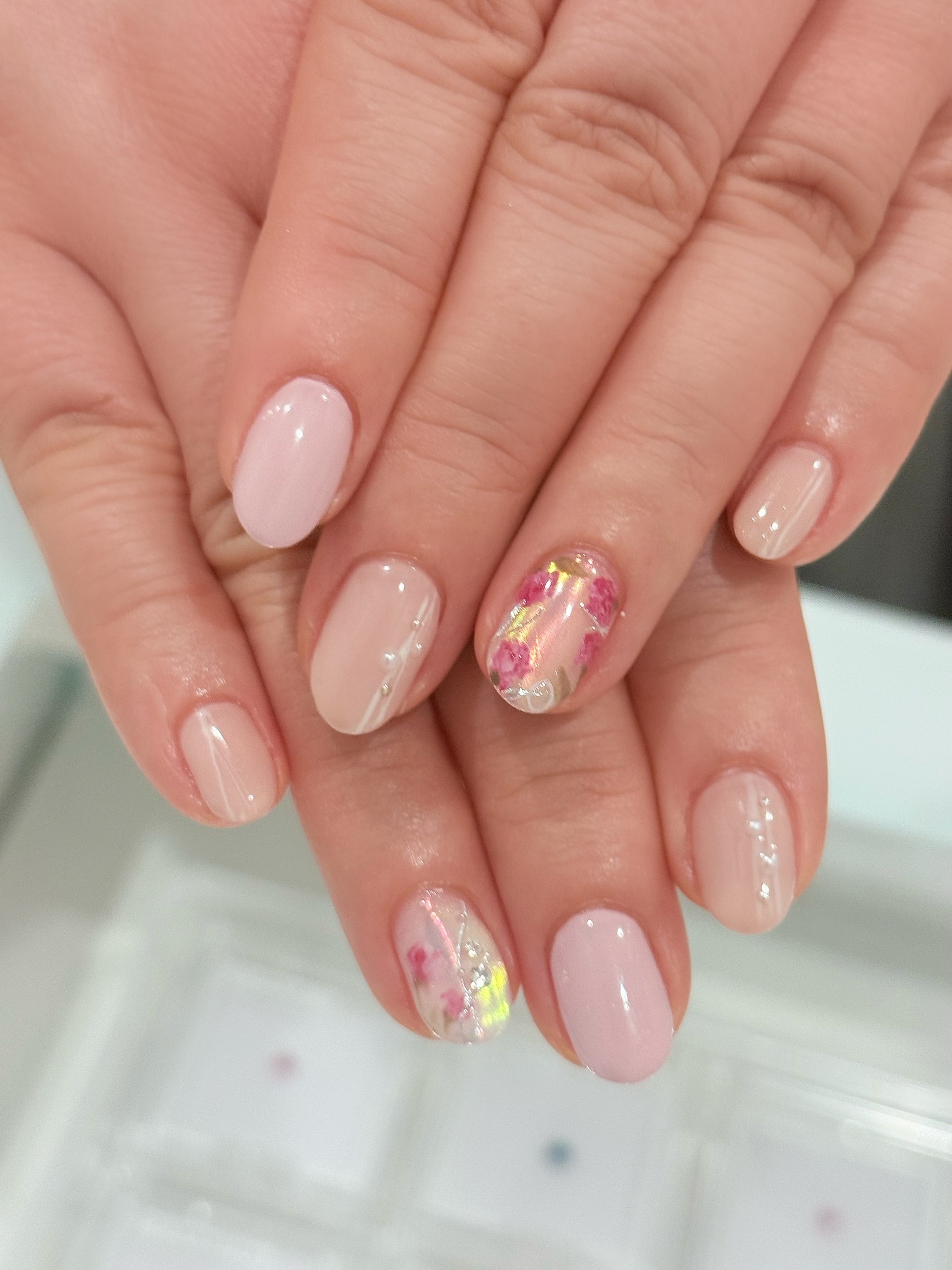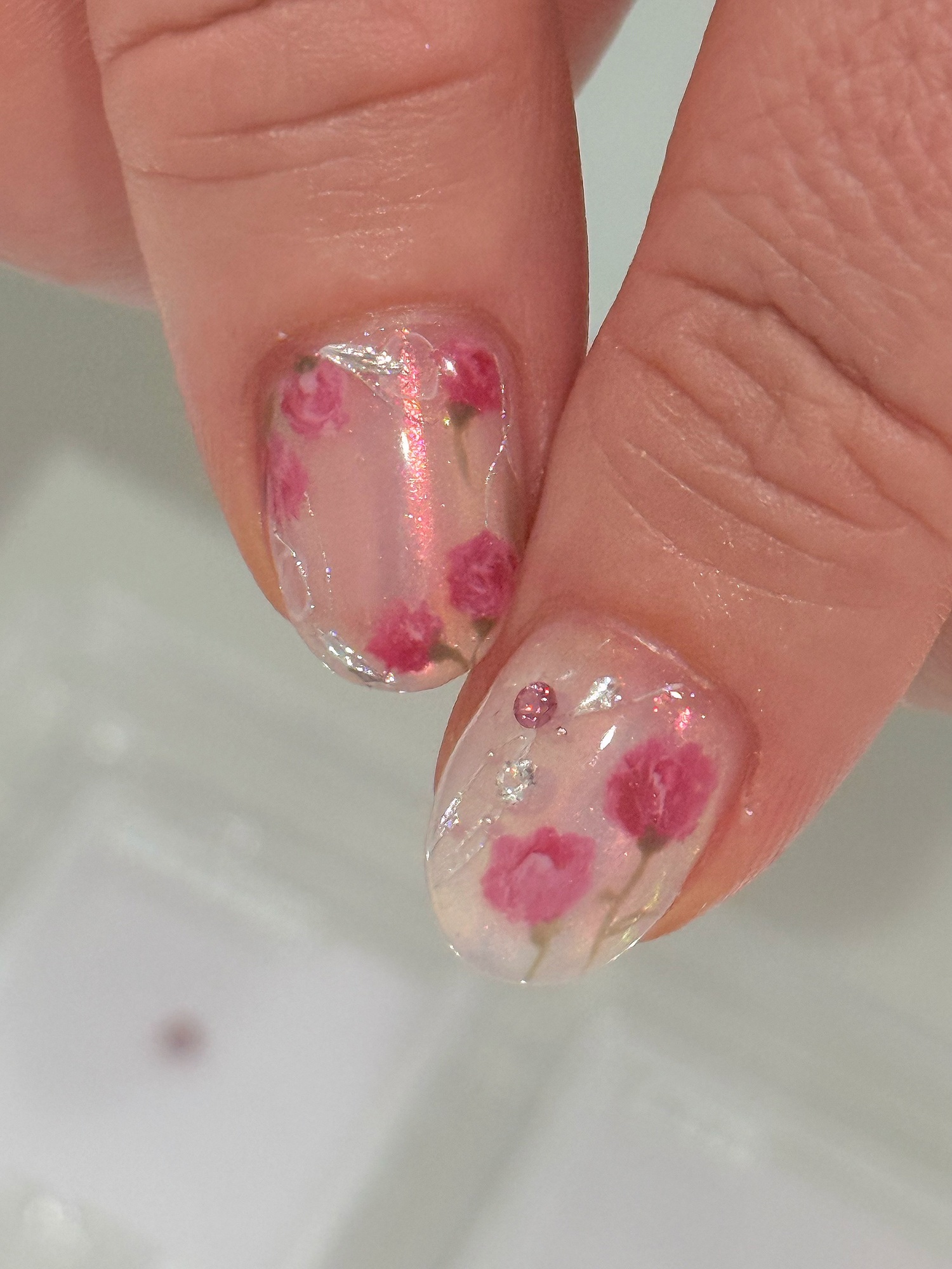 こちらはカーネーションのアート、上品、シンプル仕上げご希望でおまかせでした♪